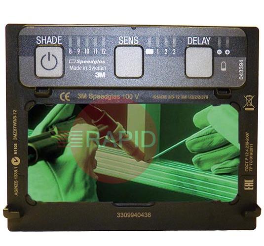 3M Speedglas 100V Auto Darkening Filter. Shade 8 to 12 EW. 110 x 90mm Fitment 39113