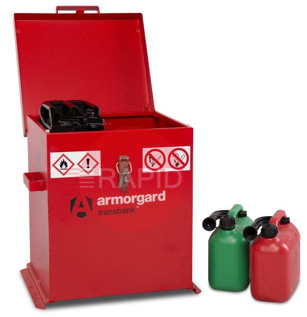 Transbank Hazardous Transit Box 530mm x 485mm x 540mm, designed specifically for storing or transporting smaller quantities of flammables or chemicals, fully complies with all regulations. Designed around the sizes of ‘jerry’ cans and 5-litre fuel and chemical cans, TRB2 will hold 2 x 20-litre Jerry Cans.