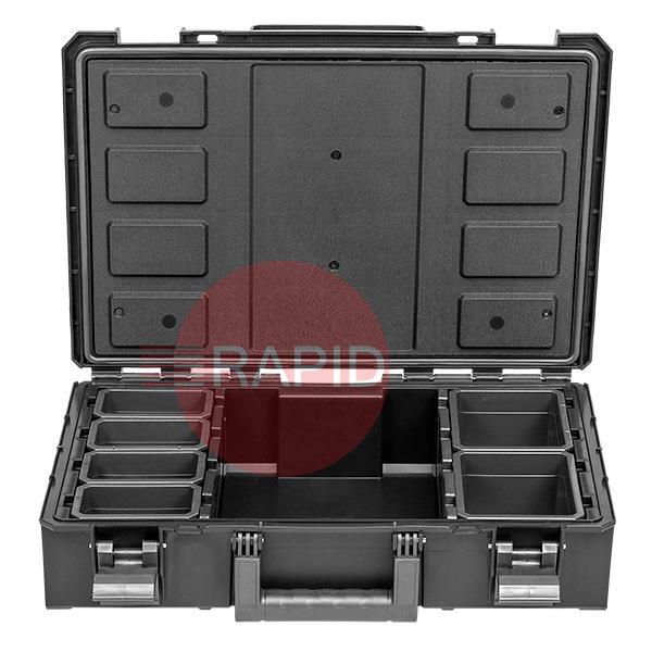 The Base 200 is ideal for holding cordless power tools, batteries, chargers, and other essential portable equipment. The tool case features top and side handles for easy carrying or can be connected directly to the STAKIT SiteCart or Workshop Trolley for transportation. It comes with 6 x internal organiser boxes and 2 x accessory organisers in the lid that can be used to help keep hex keys, grub screws and other small tools tidy and safely out of the way.