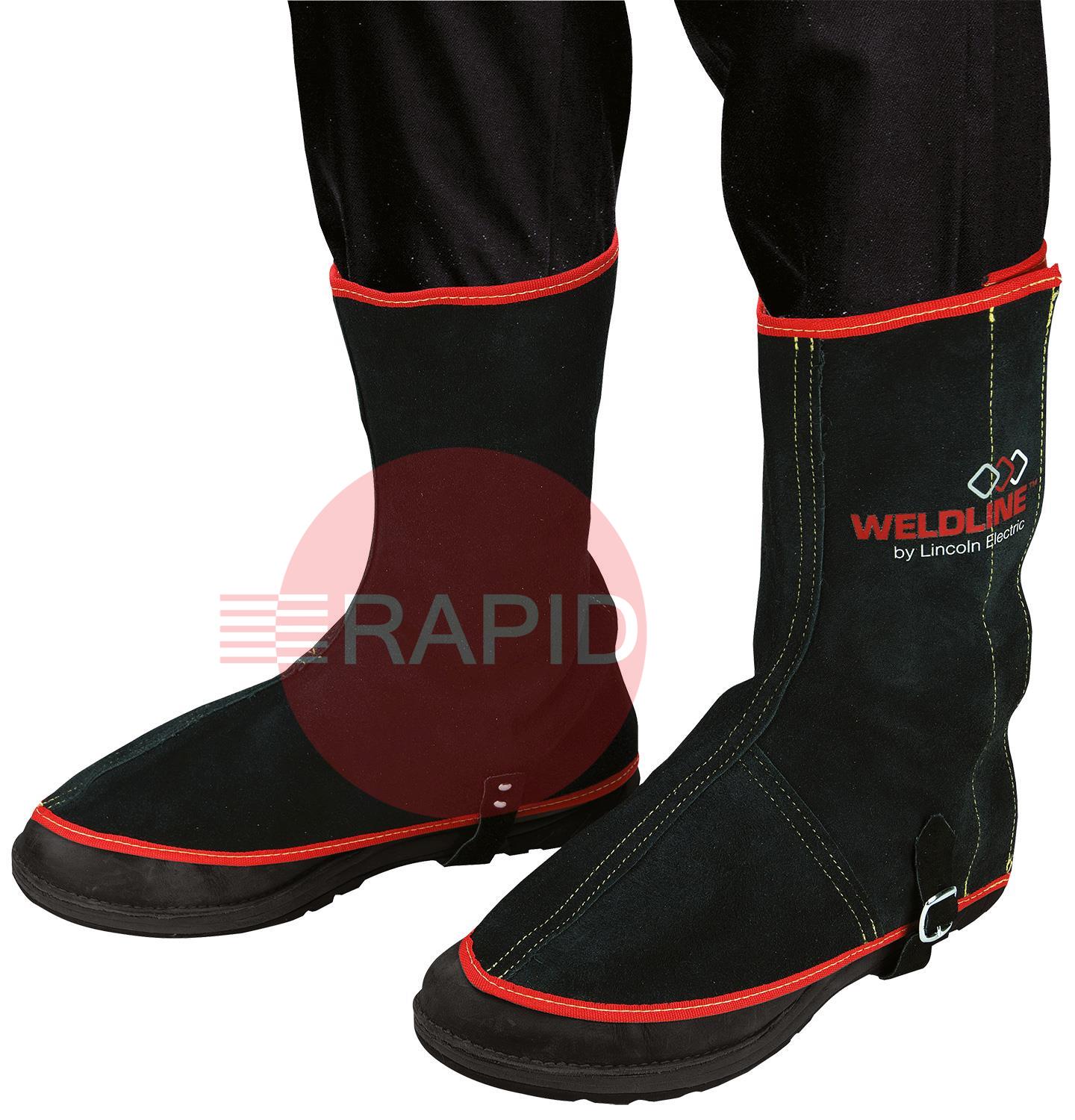 The Weldline Gaiter with Straps is designed to protect the bottom of welders’ trousers and shoes from sparks and heat generated during the welding and grinding processes. The gaiter with straps is manufactured in four separate pieces that are then stitched together, and combined with an adjustable leather belt for security. Width 30cm.