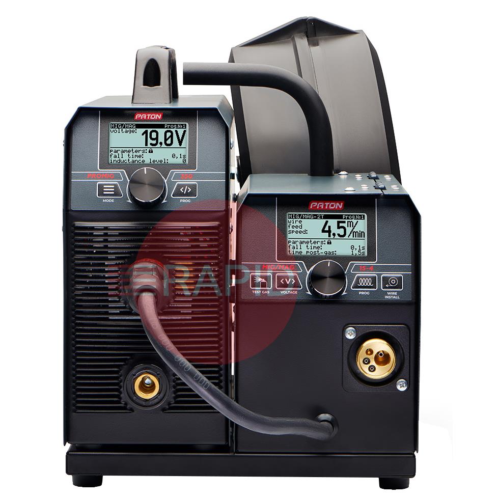 Digital semiautomatic inverter PATON ProMIG-350-15-4 W – is a device for professional use, designed for semi-automatic welding (MIG/MAG), manual arc welding (MMA), TIG DC, in shielding gases and mixtures thereof. In ProMIG-350-15-4 W, the machine offers an all-digital control system, thereby ensuring its versatility and the ability to fine-tune welding conditions. Expectancy increased load on the rated current to 350A, allows any electrode diameter from 1.6 mm to 6 mm, and conducts semi-solid welding wire with a diameter of 0.6 to 1.4 mm.