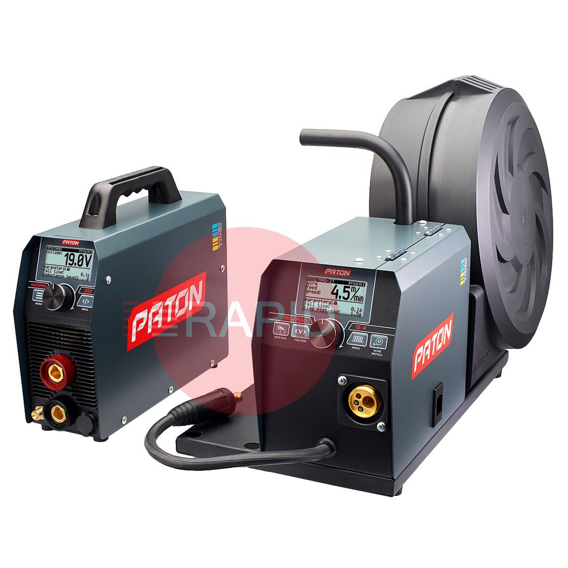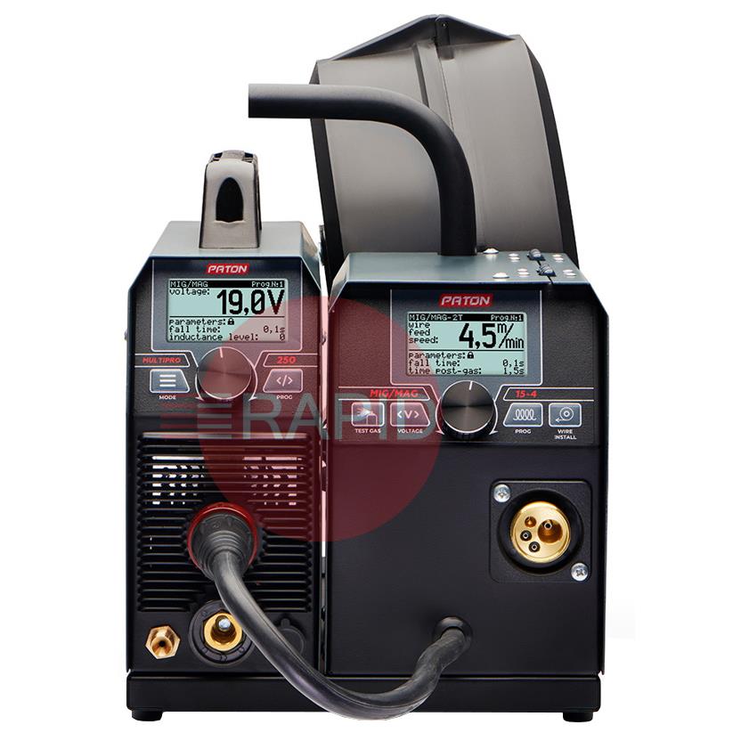 The digital multifunctional welder inverter PATON MultiPRO 200 15-4 230V is intended for semi-automatic welding with the MIG/MAG method, manual arc welding with the MMA method, and arc welding with the TIG HF method in a shield of gases and protective mixtures with direct current. These machines operate from a 230V single-phase power supply and have an IP33 protection rating.
