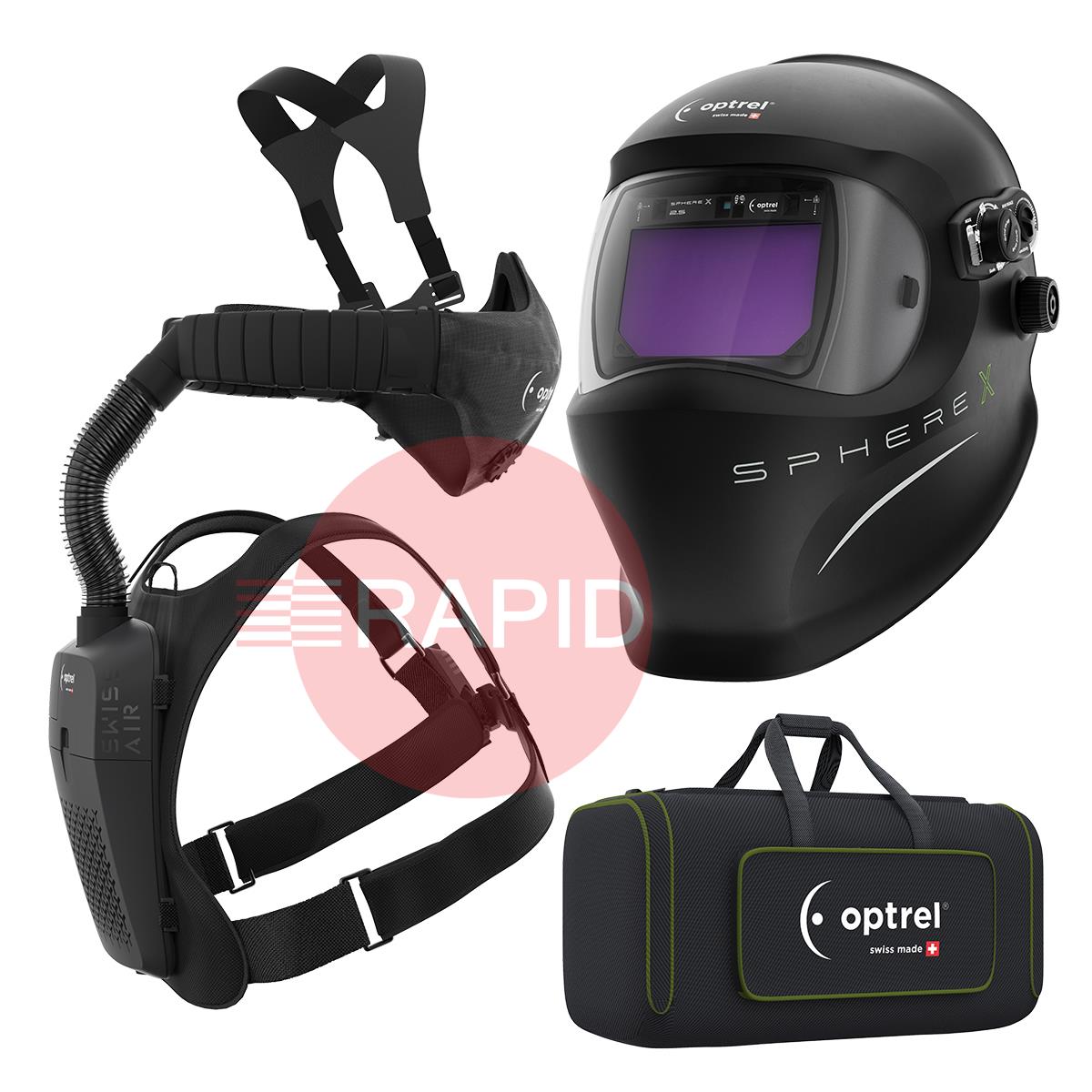 Optrel Sphere X 2.5 Auto Darkening Welding Helmet & Swiss Air PAPR Air Fed Halfmask System, Ready to Weld Package 4600.200