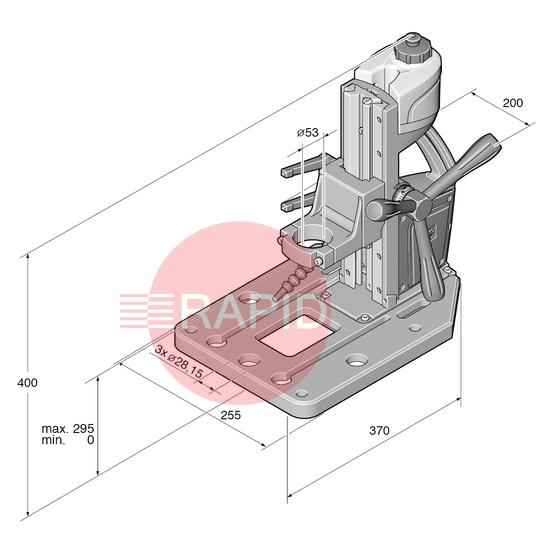 Industrial drill jig for drills with drilling capacity of up to 16 mm.