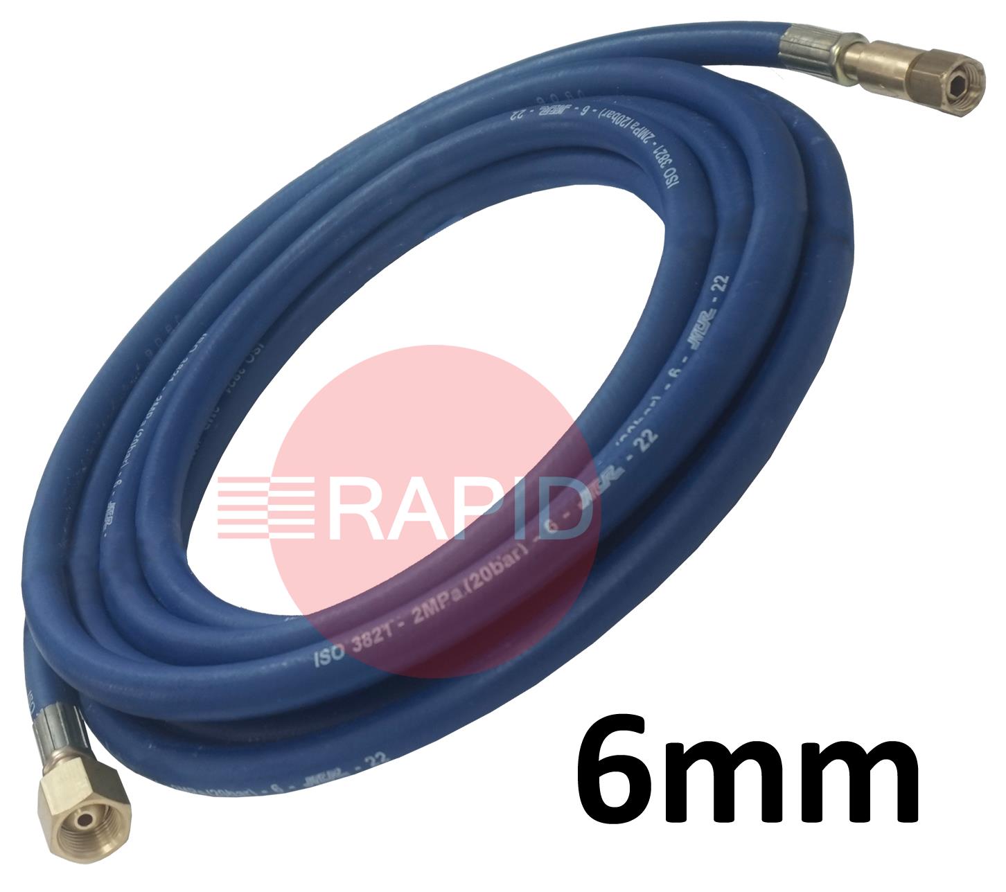 Fitted Oxygen Hose. 6mm Bore. G1/4" Check Valve & G3/8" Regulator Connection