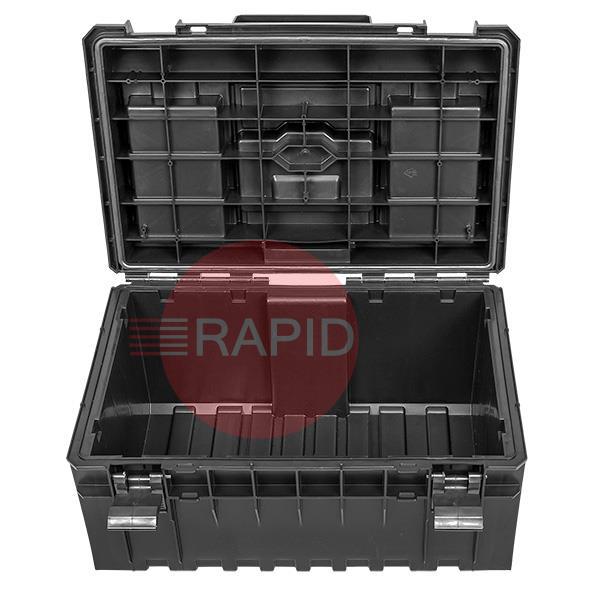 The STAKIT Base 350 is the perfect option for larger equipment storage or for holding all your handheld drive tools in one place. Big enough to fit multiple cordless drills, impact tools and more it features a top handle for short-distance carrying or can be fixed to the SiteCart or Workshop trolley for travelling extended distances. No foam inserts or dividers means this case offers the most flexibility and can be filled with whatever is needed for the job.