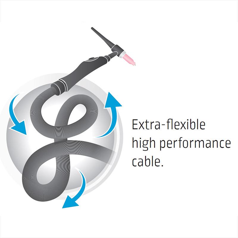 Lincoln WTT2 20 EB Flex Head Water-Cooled TIG Torch with 5 Pin Plug, 8m