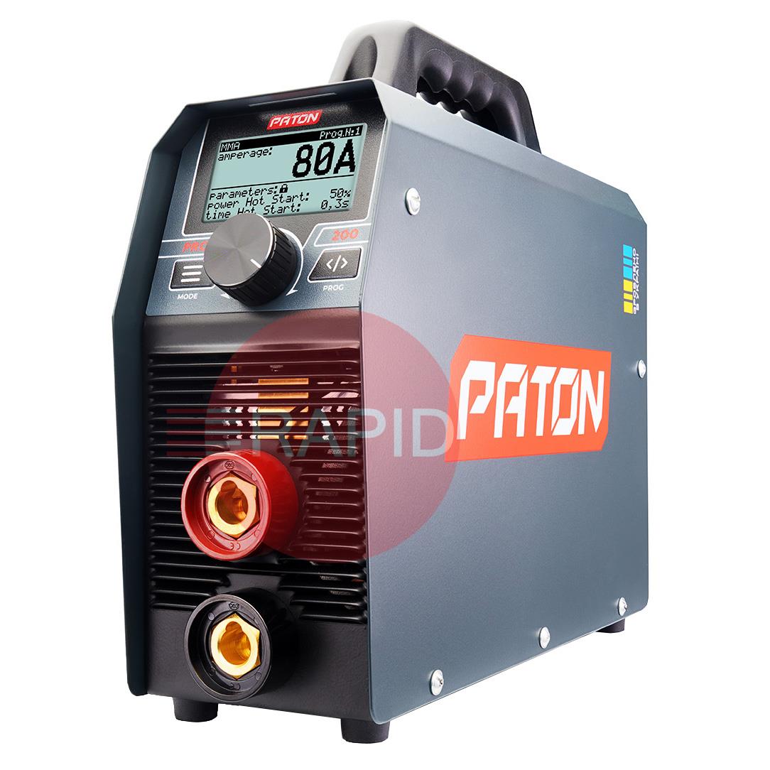 The PATON PRO-200 is a compact 200A arc welder, ideal for professional and industrial welding works. This inverter welder is also capable of TIG Lift and MIG/MAG welding after the purchase of a wire feeder. The device's small size makes it very mobile. The PATON PRO-200 welder has a work stabilisation system installed, allowing it to be powered by a generator. The 200A output allows the use of electrodes from 1.6mm to 5.0mm in diameter and semi-automatic welding with solid wire from 0.6mm to 1.0mm (MIG/MAG welding is possible after purchasing a wire feeder). The PRO-200 features a 70% duty cycle and a 5-year warranty.