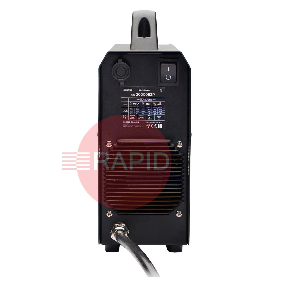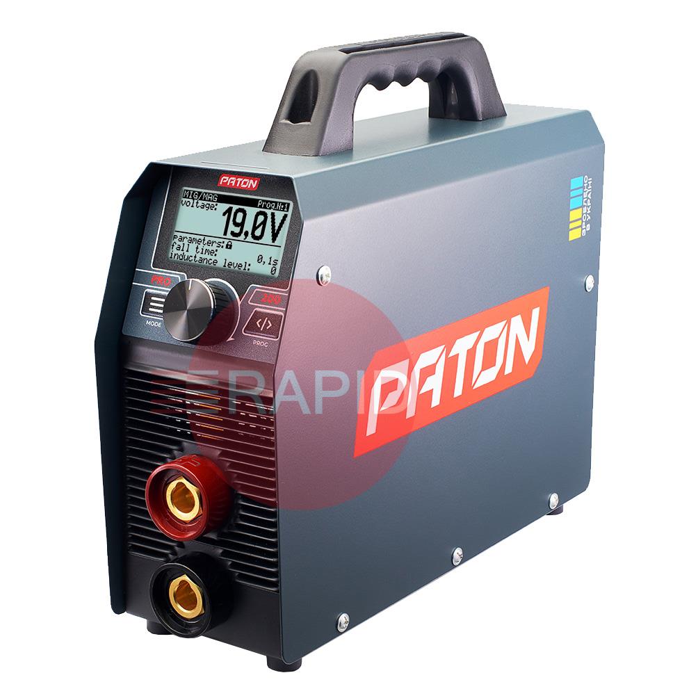 Universal inverter welder PATON PRO-200 is designed for manual arc welding with the MMA method, argon-arc welding with the TIG method with direct current and semi-automatic welding with the MIG/MAG method in a shield of gases and protective mixtures. The PATON™ PRO-200 welder has a work stabilisation system installed, allowing it to be powered from a generator. The 200A output allows the use of electrodes from 1.6mm to 5.0mm in diameter and semi-automatic welding with solid wire from 0.6mm to 1.0mm (MIG/MAG welding is possible after purchasing a wire feeder). The PRO-200 features a 70% duty cycle and a 5-year warranty.