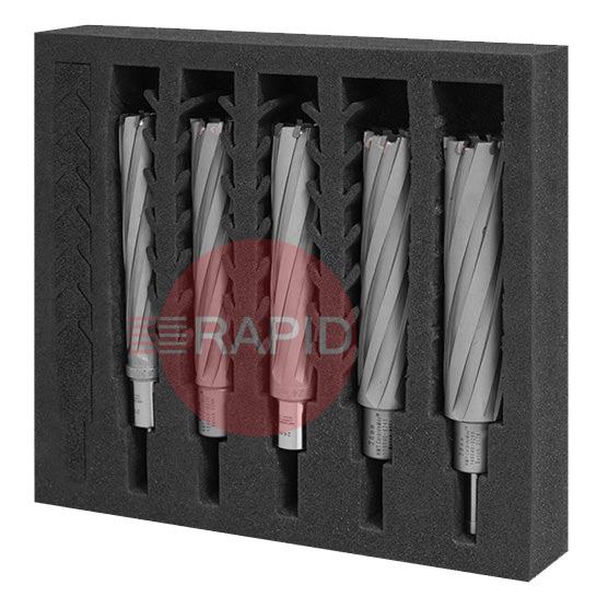 This set offers incredible performance on the most difficult jobs. The CarbideMax TCT Broach Cutters feature an elaborate cutting geometry, resulting in faster, quieter, easier drilling and chatter-free performance. Furthermore, because the teeth of the cutter are doing all of the hard work, less strain is put on the wall of the cutter. Therefore, a thinner wall thickness is required, meaning less material is removed, resulting in a substantially faster cut.