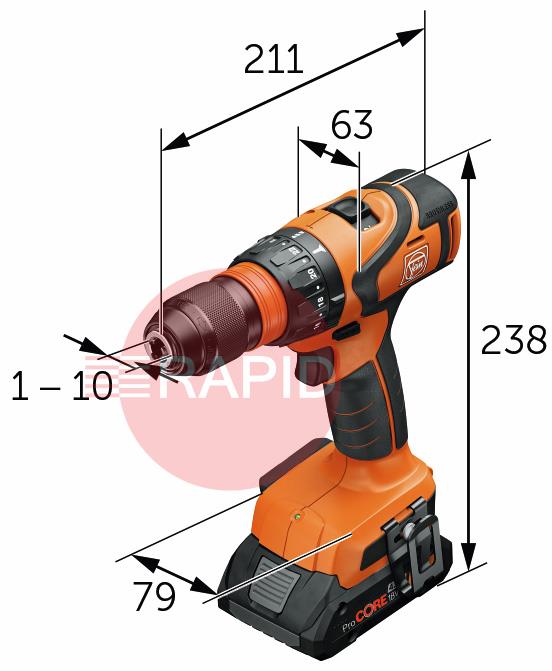Drill chuck clamping width: 1.5 - 13mm