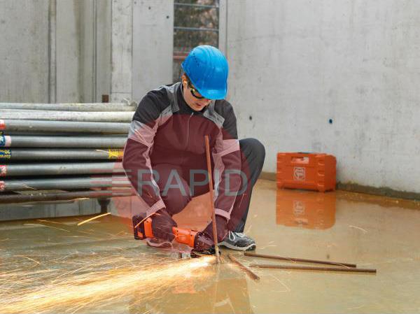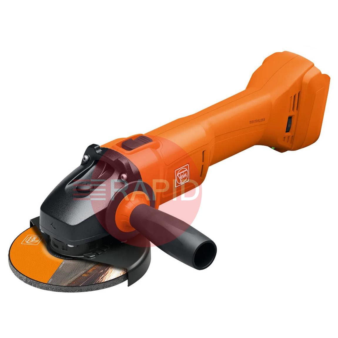 1 wheel guard, 1 Tool-free quick-clamping nut, 1 anti-vibration handle, 1 key, and 1 plastic tool case (L-BOXX 238).