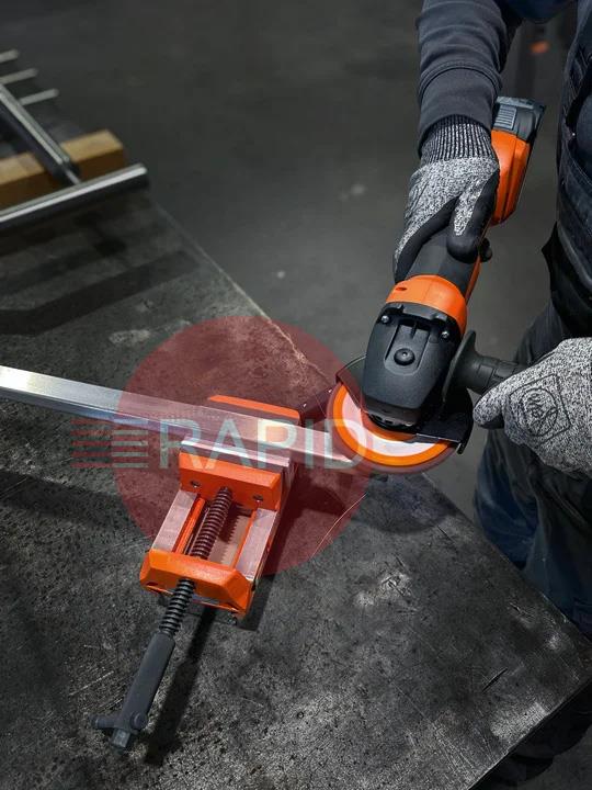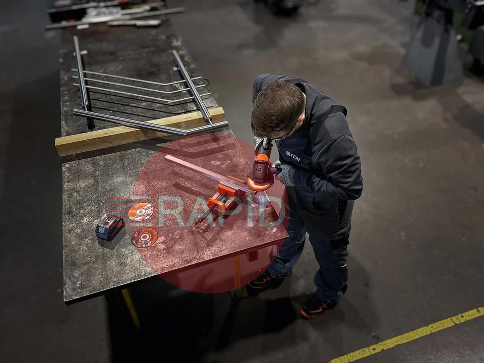 Dust-resistant and powerful, compact cordless angle grinder with dead man's switch for effective cutting, grinding and deburring work in assembly jobs.