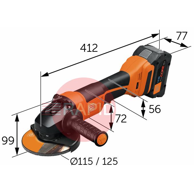 • 71221761000  FEIN CCG 18-115-12 PD AS Cordless 115mm 18V Angle Grinder, with Paddle Switch (Bare Unit)