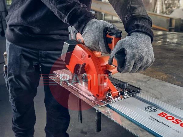 • High performance – low weight: 50% more material is removed than with standard metal circular saws as the brushless motor, ProCORE battery and optimally coordinated saw blade interact perfectly. And the tool weighs just 3Kg